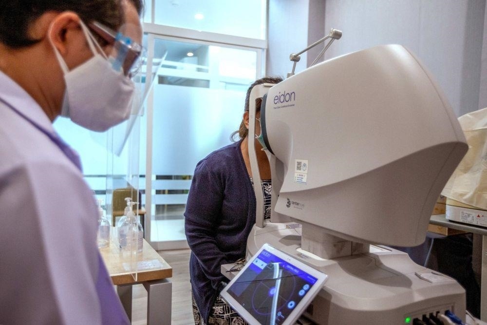 △2022年2月14日,在泰國曼谷詩里拉吉醫(yī)院,一名醫(yī)生操作5G自動(dòng)驗(yàn)光儀為患者檢查。2021年12月,5G智慧醫(yī)院項(xiàng)目在詩里拉吉醫(yī)院啟動(dòng)。