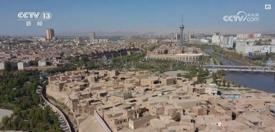 總臺央視記者 張春玲:這里是喀什的高臺民居。據考證,從漢代開始,就已經有人在這里聚居了。隨著人口等因素的增長,我們可以看到這兒的房子是越蓋越高,逐漸發(fā)展成了獨特的建筑風貌。通過創(chuàng)造性的保護,我們現(xiàn)在可以在這樣一個高臺上,近距離地感受民居的風貌 ,同時還可以深入到當?shù)鼐S吾爾族人民的文化和生活當中。