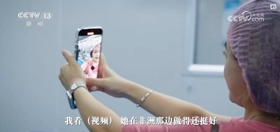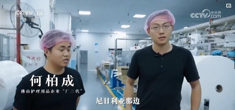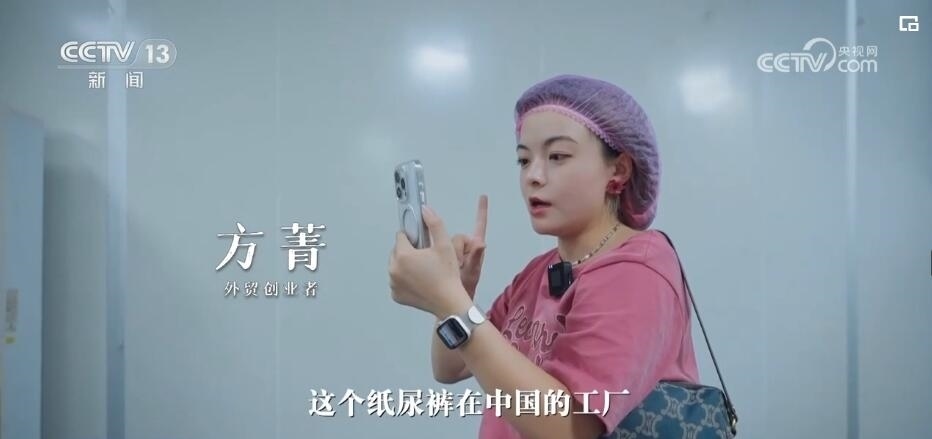 記者:現(xiàn)在方方(方菁)在給她的非洲客戶(hù)打視頻電話(huà),來(lái)給她更直觀(guān)地看,這個(gè)紙尿褲在中國(guó)的工廠(chǎng)是怎么生產(chǎn)出來(lái)的。