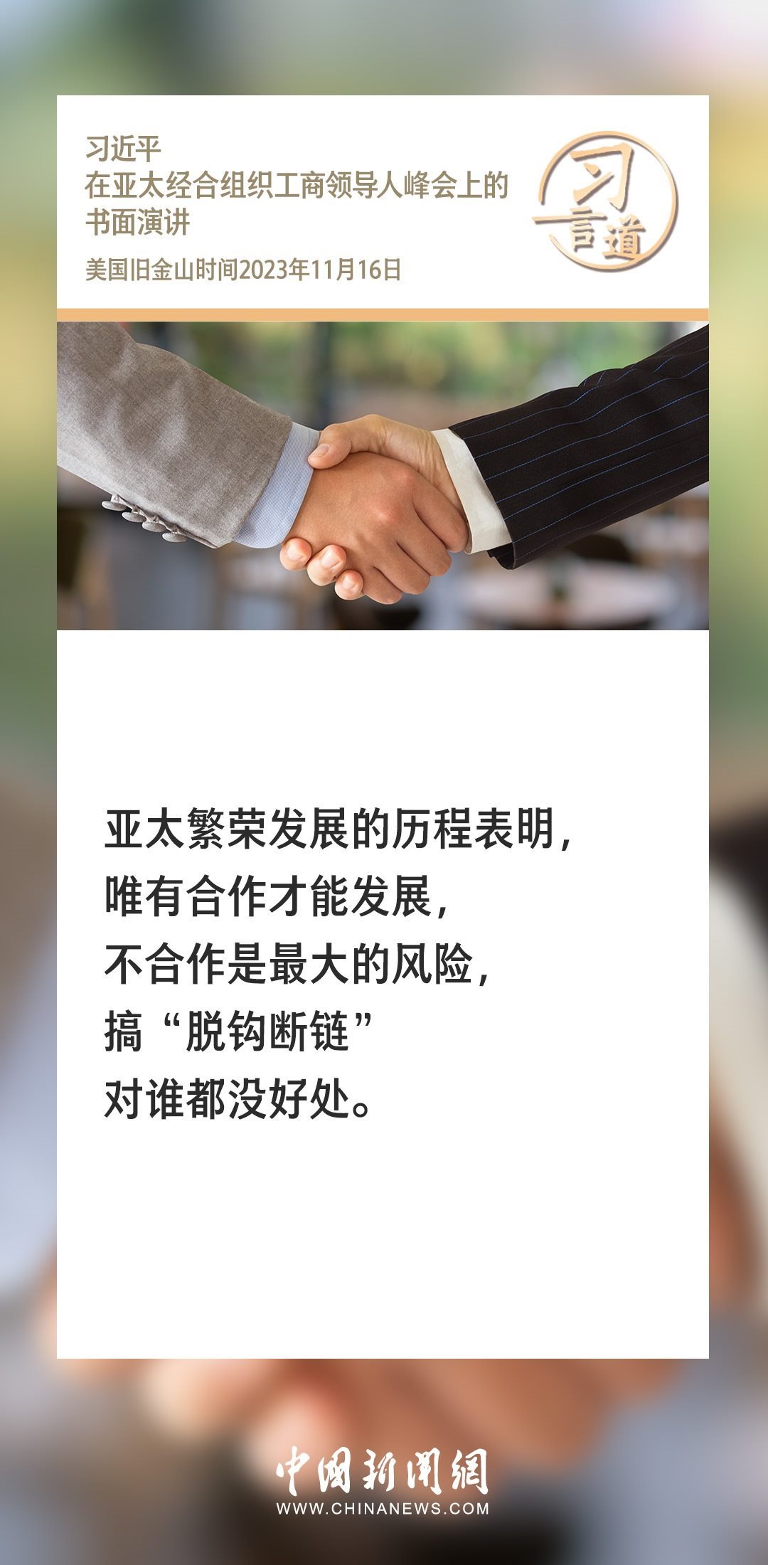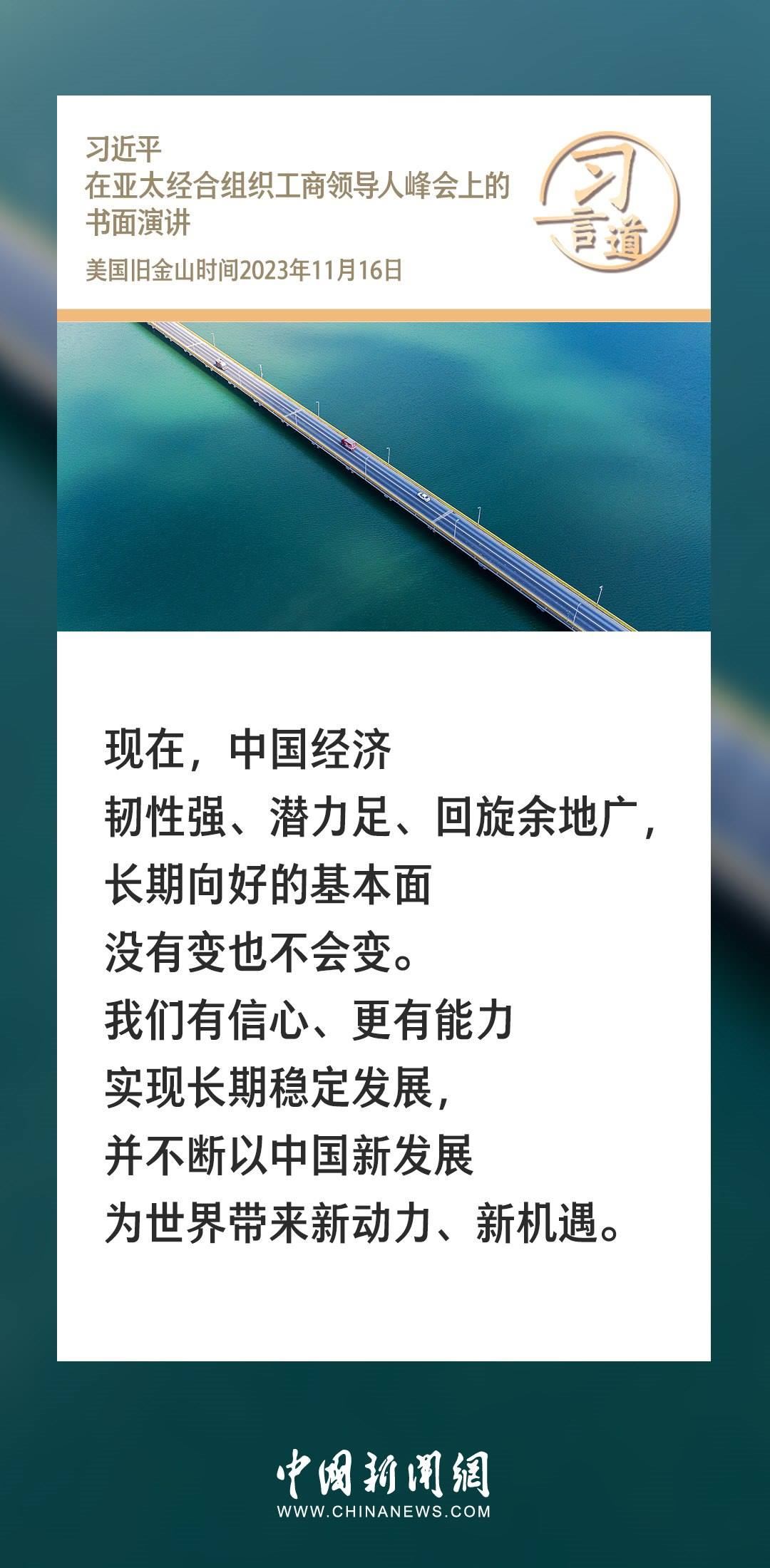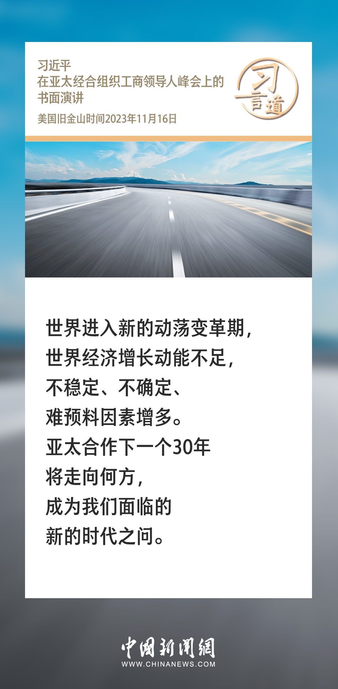 當(dāng)?shù)貢r(shí)間11月16日上午,國(guó)家主席習(xí)近平向在舊金山舉行的亞太經(jīng)合組織工商領(lǐng)導(dǎo)人峰會(huì)發(fā)表題為《同心協(xié)力 共迎挑戰(zhàn) 譜寫亞太合作新篇章》的書面演講。習(xí)近平指出——