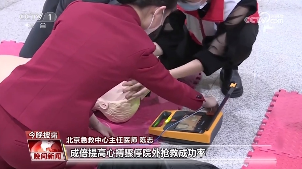 北京急救中心主任醫(yī)師 陳志:對于心搏驟停的患者,如果我們僅使用單純的胸外壓、人工呼吸這些基本心肺復(fù)蘇的方法,搶救成功率其實不高。如果這個時候有了AED,配合AED的電擊就能夠成倍提高心搏驟停院外搶救成功率。