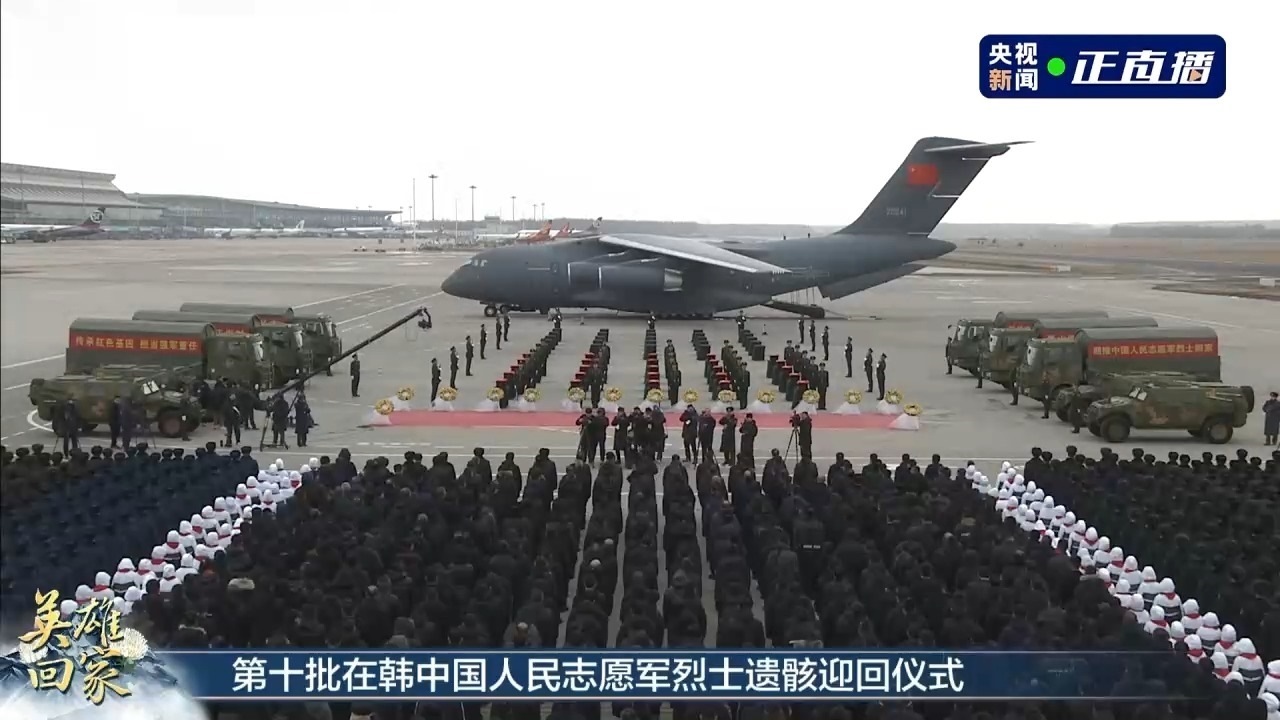 12時(shí)18分,由退役軍人事務(wù)部牽頭組織的志愿軍烈士遺骸迎回儀式在沈陽(yáng)桃仙國(guó)際機(jī)場(chǎng)舉行。來(lái)自志愿軍烈士親屬、相關(guān)部門(mén)、部隊(duì)官兵等各界代表約1000人參加。儀式結(jié)束后,志愿軍烈士遺骸棺槨被由45輛警用摩托組成的騎警車(chē)隊(duì)護(hù)送前往沈陽(yáng)抗美援朝烈士陵園。24日10時(shí),第十批在韓中國(guó)人民志愿軍烈士遺骸安葬儀式將在該陵園志愿軍烈士紀(jì)念廣場(chǎng)舉行。2014年至2022年,已先后有913位從韓國(guó)迎接回來(lái)的志愿軍烈士在此安息。