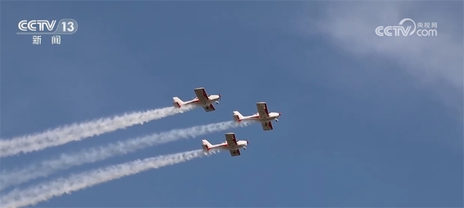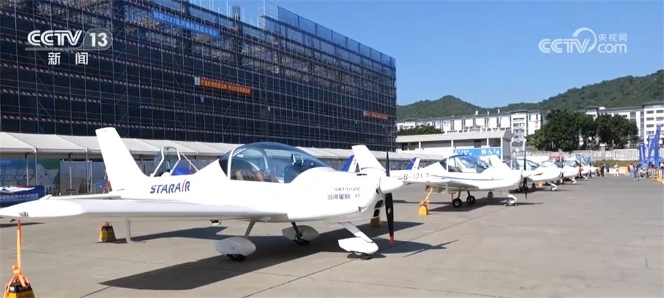 總臺(tái)央視記者 吳天白:在我身后停放的20架通用飛機(jī)與飛行表演中“山河”飛行表演隊(duì)所駕駛的飛機(jī)是同款。這款飛機(jī)不僅動(dòng)力強(qiáng)勁、性能出色,還是我國(guó)首款自主研發(fā)制造可用于飛行表演的運(yùn)動(dòng)型通用飛機(jī)。