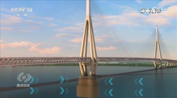 鄭清剛:“鐵路一側(cè)的荷載比公路一側(cè)要重8.6噸,就是每延米有8.6噸,就像兩個人抬東西,比如一頭重量大了的話,就會發(fā)生一頭高一頭低的情況。我們是通過一些結(jié)構(gòu)上的辦法,采用不同強度的斜拉索來匹配這個受力。”