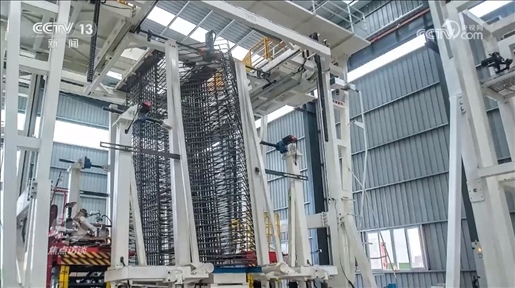 王輝:“通過手機掃描能夠數(shù)字化顯示鋼筋所有的生產(chǎn)信息,鋼筋智能生產(chǎn)的設備把原材料鋼筋做成單元件,通過這個設備的組裝形成了鋼筋片體。像這樣的片體5號塔要用3萬個,大概分成了3200組,每一組鋼筋用的部位都不一樣,為了精準識別它用在哪里,每一組要給它一個識別信息,做一個二維碼,通過手機掃描就可以知道它要用在哪個地方?!?/p>