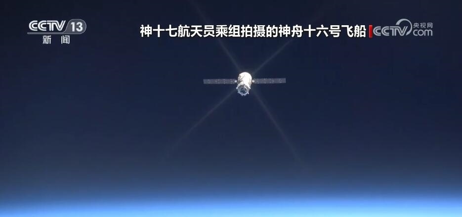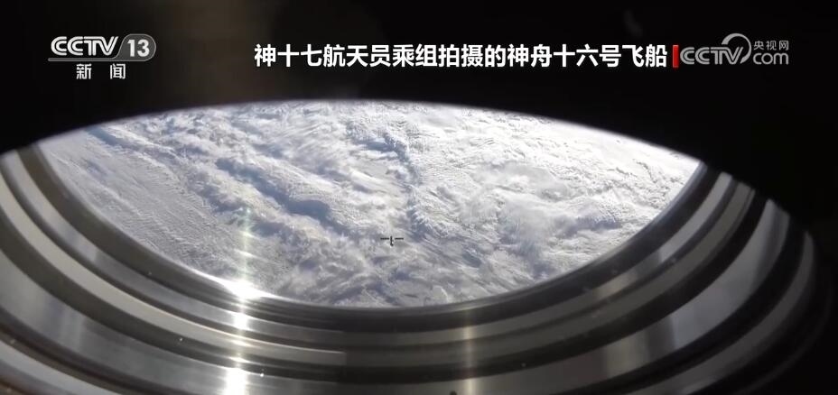 這是2023年10月30日,神舟十七號乘組在空間站內(nèi)拍攝的畫面,畫面中,神舟十六號飛船正在撤離空間站。