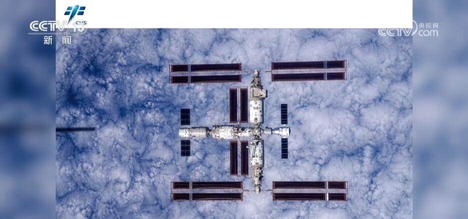 撤離后,神舟十六號乘組在返回地面前,航天員手持高清相機(jī)通過飛船繞飛拍攝了空間站組合體。這是在軌首次獲取的以地球?yàn)楸尘暗闹袊臻g站全貌圖像,也是第一組反映空間站全構(gòu)型的工作照。