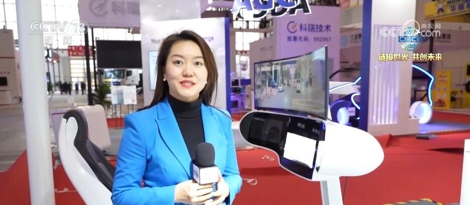 在本屆鏈博會上,智能汽車鏈的中游包括智能駕駛解決方案和動力電池解決方案等也得到展示。在我身旁的是這家展商帶來的高階智能駕駛解決方案,我們一起去體驗一下。大家可以看到,上面這塊大屏幕是實時的路況,左側(cè)屏幕實際上是計算機(jī)算法看到的現(xiàn)在道路路況,右手邊是汽車和其他汽車交互的情況,主要用于規(guī)劃路線。這款高階智能駕駛解決方案將于今年四季度進(jìn)行量產(chǎn)。有了它的輔助,未來,出行將會更加安全和輕松。