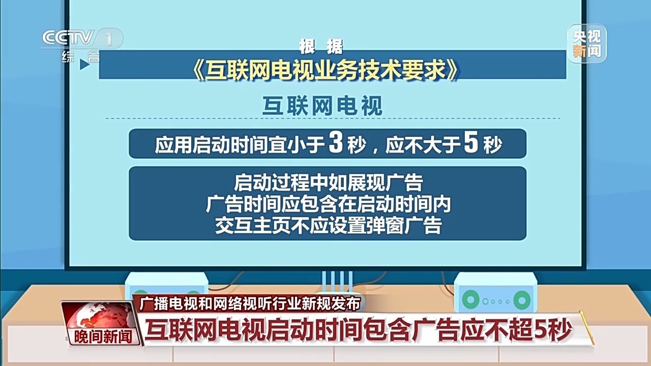 互聯(lián)網(wǎng)電視啟動時間包含廣告應不超5秒
