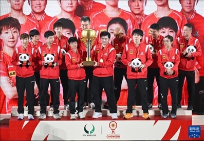 國乒九戰(zhàn)全勝奪得混合團(tuán)體世界杯冠軍。