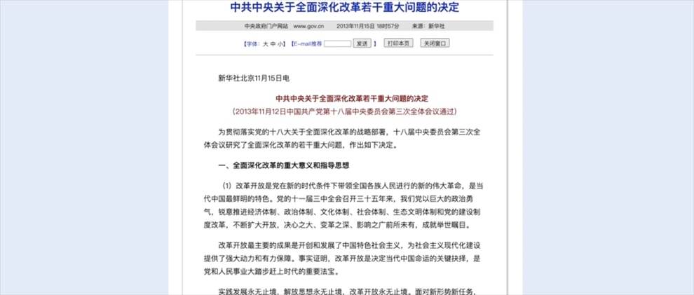 2013年11月,黨的十八屆三中全會通過由習(xí)近平總書記親自主持起草的《中共中央關(guān)于全面深化改革若干重大問題的決定》。《決定》首次提出全面深化改革的總目標(biāo)——完善和發(fā)展中國特色社會主義制度,推進(jìn)國家治理體系和治理能力現(xiàn)代化。