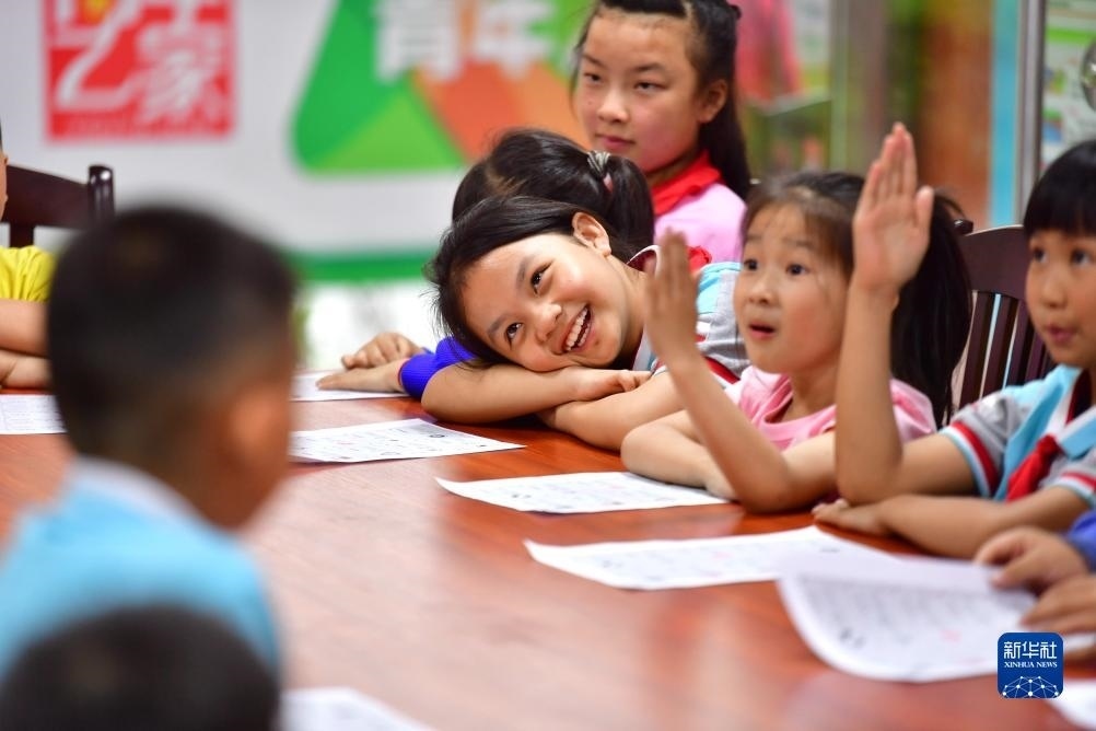 在廣西柳州市融水苗族自治縣易地扶貧搬遷安置小區(qū)苗家小鎮(zhèn)青年之家“六點(diǎn)小課堂”,孩子們參與興趣活動(dòng)(2022年5月5日攝)。近年來,廣西柳州市融水苗族自治縣團(tuán)縣委在易地扶貧搬遷安置小區(qū)苗家小鎮(zhèn)、苗美社區(qū)開設(shè)青年之家“六點(diǎn)小課堂”,定期組織青年志愿者,為這里的青少年開展功課輔導(dǎo)、自護(hù)教育、科技小課堂等活動(dòng)。新華社記者 黃孝邦 攝