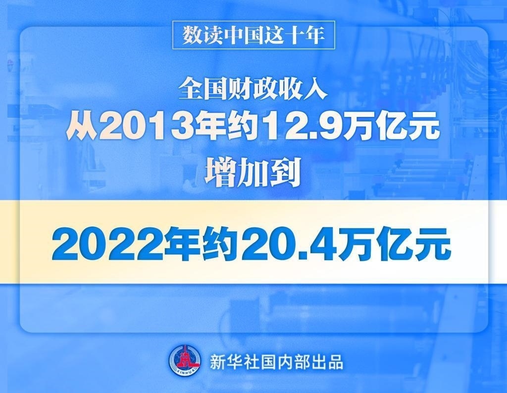 黨的十八大以來,財(cái)政收入保持較快增長(zhǎng),全國(guó)財(cái)政收入從2013年的約12.9萬億元增加到2022年的約20.4萬億元。