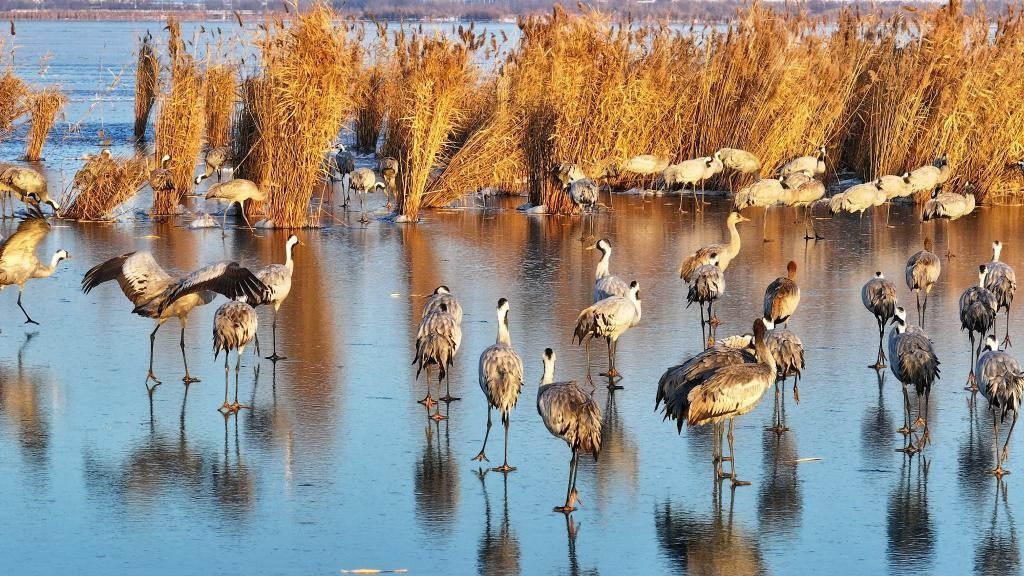 “12月初開始,鶴群陸續(xù)飛臨衡水湖。目前正處于候鳥越冬期,已有60余種、5萬余只候鳥飛到衡水湖越冬?!焙馑壹壸匀槐Wo區(qū)資源保護局濕地生態(tài)監(jiān)測科科長張余廣說。