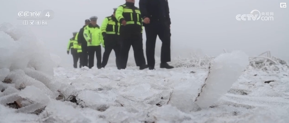 南方多地則遭遇了低溫凝凍天氣。在貴州三都縣某縣道,民警在對凝凍路段展開巡查工作時發(fā)現(xiàn),不少車輛在坡路上頻頻打滑。其中一輛自駕車發(fā)生甩尾,滑入道路排水渠。