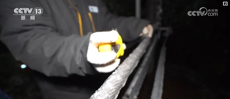 根據(jù)現(xiàn)場(chǎng)檢測(cè),現(xiàn)在導(dǎo)線上的覆冰已經(jīng)超過(guò)了18毫米,融冰工作也正式開(kāi)始。老廖告訴記者,他們采用的是導(dǎo)電加熱融冰的手段,通過(guò)對(duì)導(dǎo)線進(jìn)行增加大電流,自動(dòng)加熱,從而讓冰融化,但這一過(guò)程有時(shí)候要等很久。