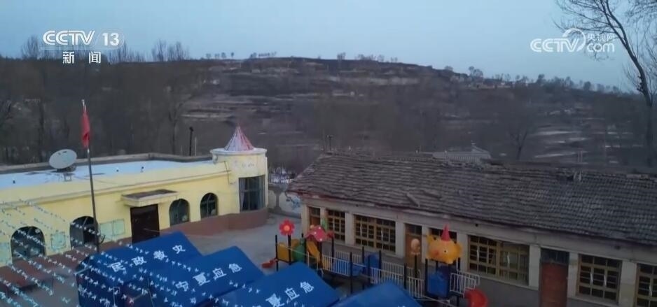 總臺記者 馬麗:我現(xiàn)在是在積石山縣前嶺小學(xué)附屬幼兒園。目前,這里也是前嶺村的一個集中安置點(diǎn)。地震發(fā)生后,這里的主體校舍沒有明顯受損,并且校內(nèi)廣場有大面積的空地,所以被作為了臨時安置點(diǎn),來安置附近的40余名村民。其中,有近30名是小學(xué)生和幼兒園的小朋友。他們有些是村民自己的孩子,有些是附近親戚家的孩子??紤]到這里的環(huán)境更加穩(wěn)定和保暖,孩子們也被聚集到了這里?,F(xiàn)在,正是早起的時間,在安置點(diǎn)也升起了裊裊炊煙,陽光從遠(yuǎn)處照了過來。