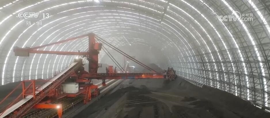總臺(tái)央視記者 張叢婧:我現(xiàn)在是來到了一臺(tái)卸煤機(jī)上,可以看到我身旁這個(gè)巨大的抓手正在抓取煤。工作人員告訴我,抓這一斗煤有20多噸。可以看到“手臂”緩緩上升,抓斗正在往外平移,這些煤會(huì)移到停在路邊的漏斗運(yùn)煤車?yán)?,裝進(jìn)去之后,就可以開到距離這一公里外的發(fā)電車間了。