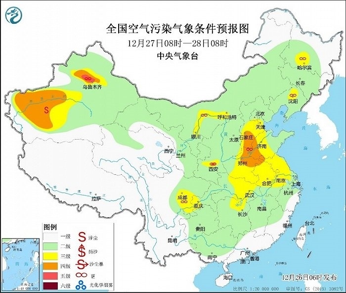 冷空氣勢(shì)力弱,霧和霾天氣又要登場(chǎng)。今天,華北、黃淮等地有輕度霾,局地中度或重度霾,27日華北中南部大氣擴(kuò)散條件將有所改善。28日至30日,華北中南部、黃淮中西部、汾渭平原等地大氣擴(kuò)散條件再次轉(zhuǎn)差,將有輕至中度霾,部分地區(qū)重度霾。此外,28日至30日的夜間至上午時(shí)段,華北中南部、黃淮、江淮東部、江漢、四川盆地等地的部分地區(qū)有大霧,局地有能見度不足200米的強(qiáng)濃霧。