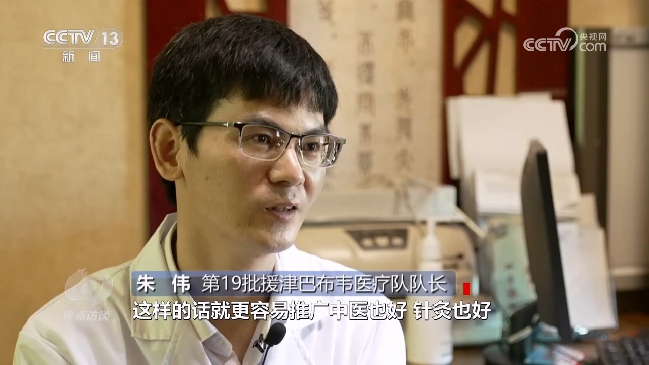 第19批援津巴布韋醫(yī)療隊(duì)隊(duì)長朱偉:“病人到60個(gè)的時(shí)候,工作強(qiáng)度太大了。后來我就慢慢給他們預(yù)約,培養(yǎng)當(dāng)?shù)氐尼樉娜瞬?,這樣就更容易推廣中醫(yī)也好,針灸也好。去年,我在那里就培養(yǎng)了十個(gè)學(xué)員,他們自己能做。當(dāng)?shù)匾彩强吹街嗅t(yī)針灸的效果,所以他們很多人想學(xué)。”