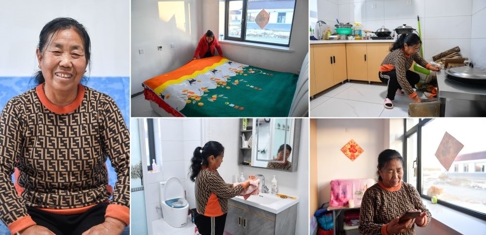 吉林省舒蘭市開原鎮(zhèn)新開村村民徐中仁在新房子中的生活場景(12月7日攝,拼版照片)。徐中仁說,“土炕”變“大床”,WIFI、自來水、室內(nèi)馬桶一應(yīng)俱全,新房子讓她體驗(yàn)上了“城里的生活”。新華社記者 許暢 攝