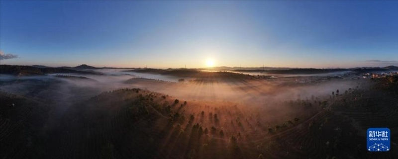 1月1日,云南省景洪市萬(wàn)畝茶園沐浴在新年的陽(yáng)光中。