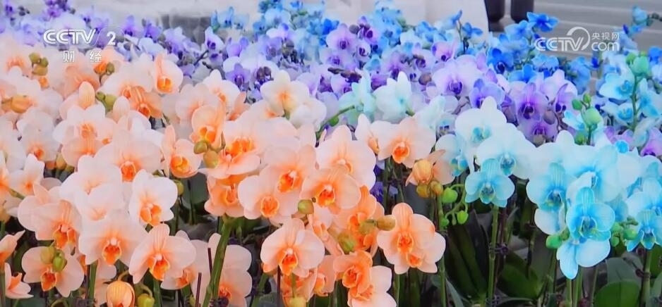 為了滿足市場需求,該基地還推出“活體染色”蝴蝶蘭,讓其根莖在生長時吸收足夠多的天然色素,從而花瓣呈現(xiàn)出藍(lán)色、橙色等各種色彩。
