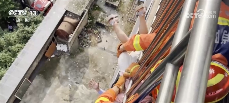 與此同時,消防部門來到樓上,在用工具強行破門之后,快速來到陽臺,最終在多方力量的配合下,成功將被困的小女孩兒救下。