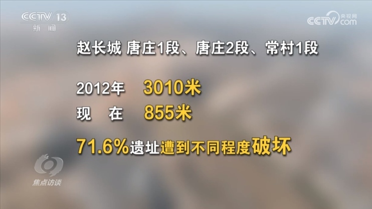 數(shù)據(jù)顯示:2012年,河南省認(rèn)定趙長城唐莊1段、唐莊2段、常村1段,三段長城實(shí)際共存在3010米,而現(xiàn)在,遺址僅存在855米,71.6%長度的遺址已遭到不同程度破壞,令人無比痛心。