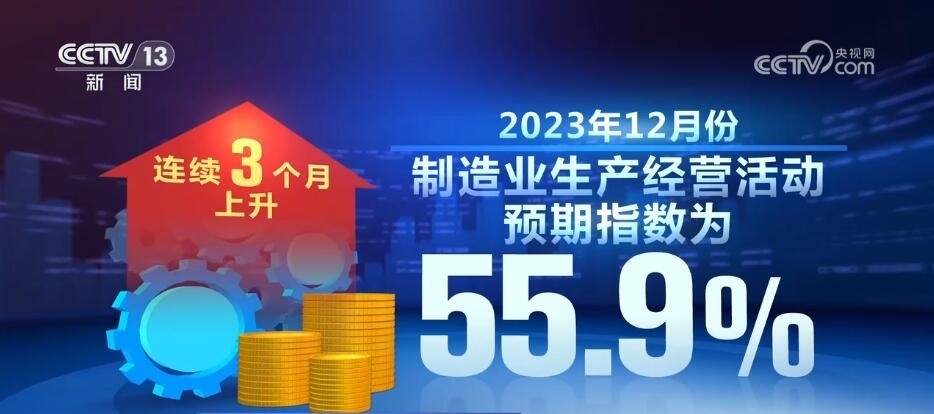 數(shù)據(jù)顯示,2023年12月份,制造業(yè)生產經營活動預期指數(shù)為55.9%,連續(xù)3個月上升,表明制造業(yè)企業(yè)對市場發(fā)展信心不斷增強。2023年12月份,高技術制造業(yè)和裝備制造業(yè)采購經理指數(shù)分別為50.3%和50.2%,繼續(xù)保持擴張。