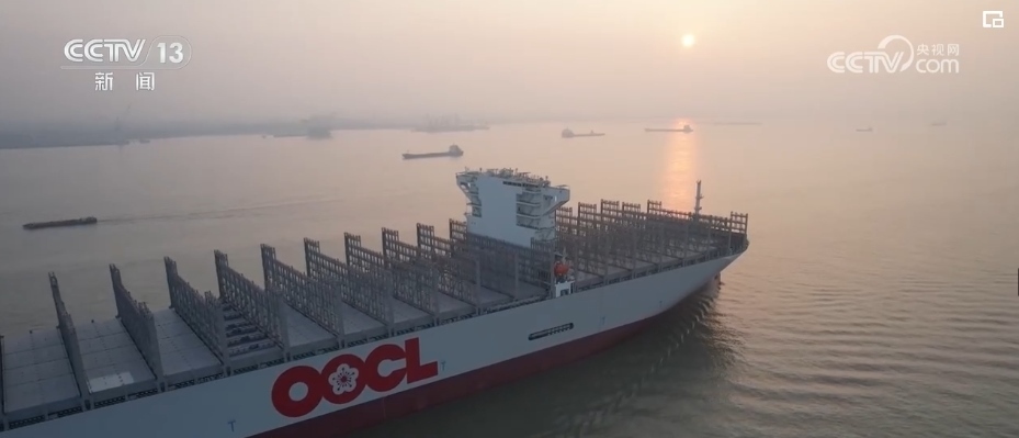 該船總長399.99米、型寬61.3米、型深33.2米,最大載貨量24188只標(biāo)準(zhǔn)集裝箱。滿載后可達(dá)22層普通住宅樓高度,甲板面積超過3個標(biāo)準(zhǔn)足球場,是我國2024年完工的首艘全球最大級集裝箱船。