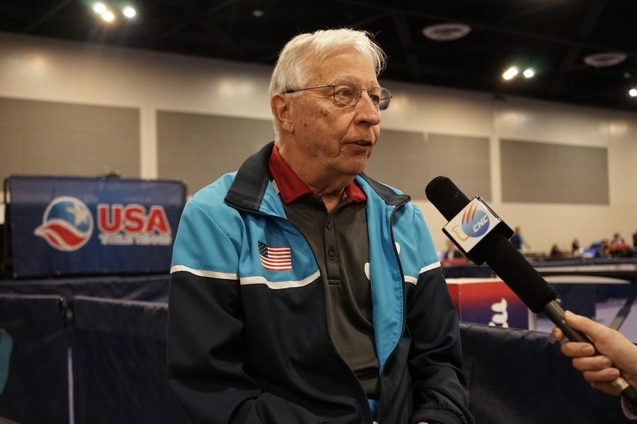 2023年12月16日,中美“乒乓外交”親歷者戴爾·斯威里斯在2023年美國(guó)乒乓球公開(kāi)賽老年組比賽間隙接受新華社記者專訪。