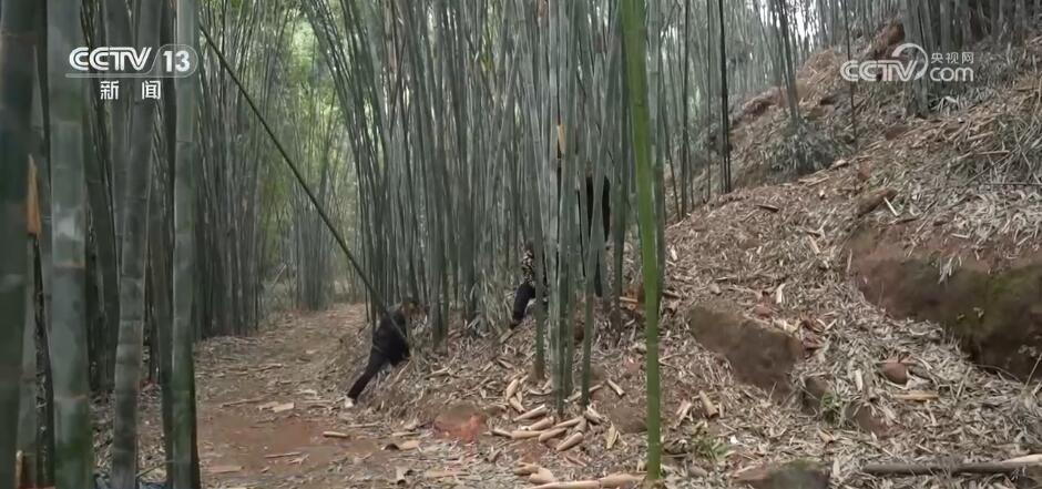 這些竹燈籠的原材料竹子全都來(lái)自青神縣本地。青神縣地處丘陵,群山環(huán)抱滋養(yǎng)了數(shù)十萬(wàn)畝竹林。這幾天,在青神縣海拔最高的天池村,漫山翠竹正值收獲季,種植戶們正抓緊采收新鮮的竹子。