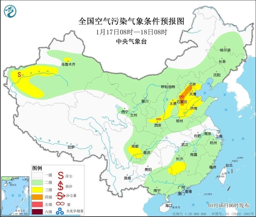 16日至18日,區(qū)域大氣擴散條件一般,山西南部、陜西關中等地的部分地區(qū)有輕至中度霾。