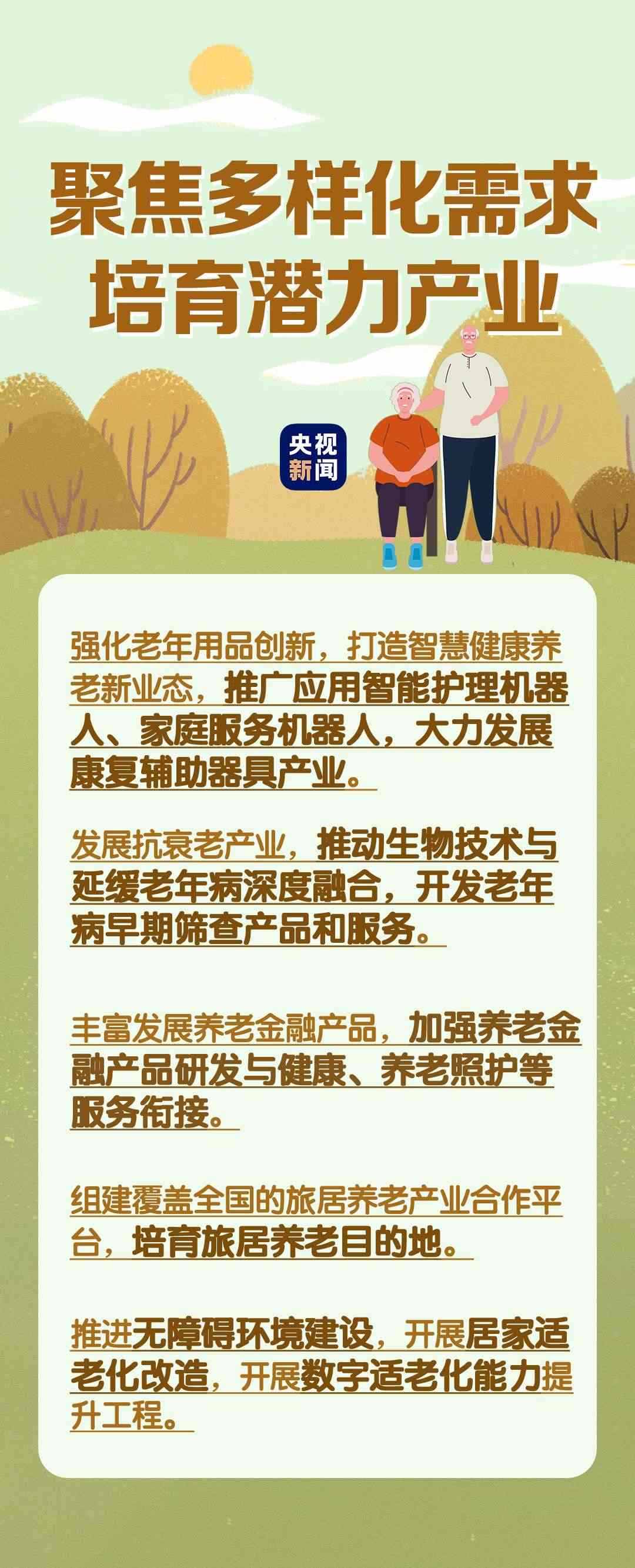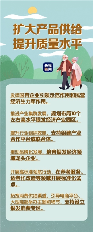 在民生事業(yè)方面,國家將擴(kuò)大和發(fā)展七方面的服務(wù),包括養(yǎng)老助餐、居家助老、社區(qū)便民、老年健康、養(yǎng)老照護(hù)、老年文體、農(nóng)村養(yǎng)老等方面的服務(wù)。國務(wù)院辦公廳印發(fā)《關(guān)于發(fā)展銀發(fā)經(jīng)濟(jì)增進(jìn)老年人福祉的意見》中提出了4個方面舉措,小編根據(jù)文件內(nèi)容進(jìn)行了簡要梳理,一圖了解“銀發(fā)經(jīng)濟(jì)”核心要點。↓↓↓