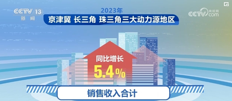 2023年,京津冀、長(zhǎng)三角、珠三角三大動(dòng)力源地區(qū)經(jīng)濟(jì)總體呈現(xiàn)較快發(fā)展態(tài)勢(shì),銷售收入合計(jì)同比增長(zhǎng)5.4%,占全國(guó)比重提高至54.1%,較2022年提高0.3個(gè)百分點(diǎn),帶動(dòng)作用持續(xù)增強(qiáng)。