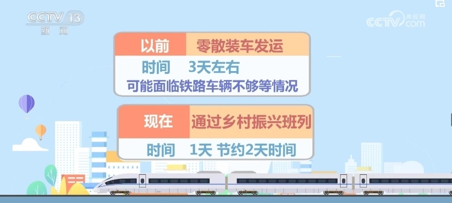 路上耗時(shí),以前零散運(yùn)輸需要8天左右,中途需要和其他同向車(chē)輛解編、重新編組,現(xiàn)在通過(guò)鄉(xiāng)村振興班列4天左右可以到達(dá),這就節(jié)約了4天時(shí)間。
