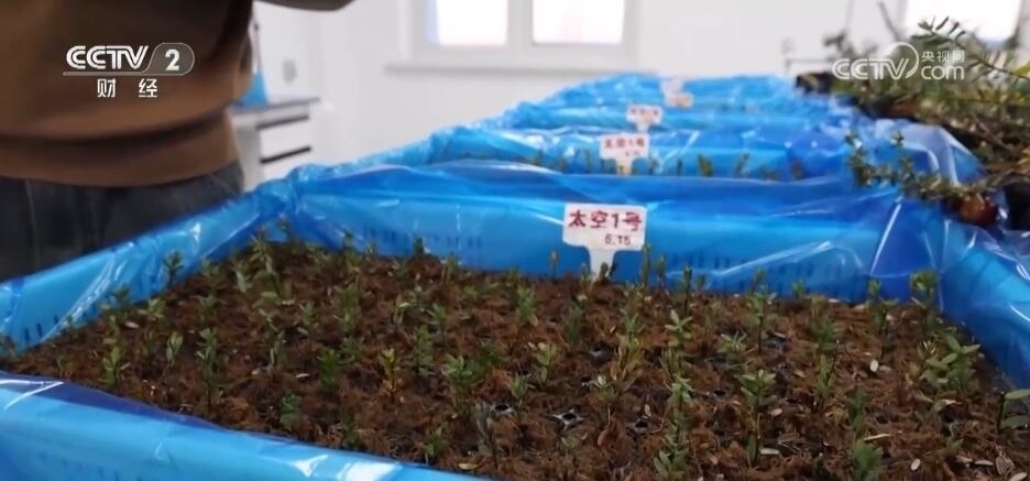 總臺(tái)記者 張程:在我身邊的這些蔓越莓苗,就是在2022年的6月5號,跟隨神舟14號飛船上天之后,又返回地球的蔓越莓種苗,現(xiàn)在已經(jīng)是破土而出。蔓越莓種植時(shí)間比較長,三年掛果,五年才能夠進(jìn)入到豐產(chǎn)期。而我們在這邊看到的就是2015年的種苗,現(xiàn)在正好處在盛果期,這個(gè)果子形如瑪瑙、色澤鮮亮。