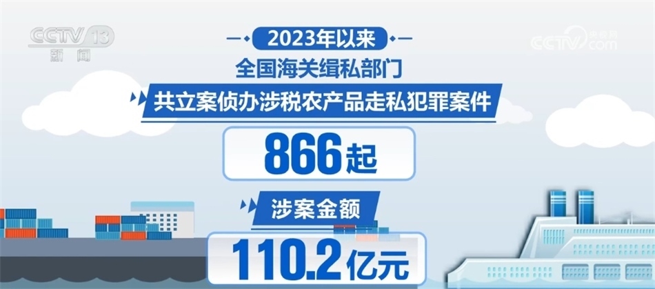 針對農(nóng)產(chǎn)品走私問題,海關緝私部門加大打擊凍品、煙草、水果、食糖、糧食等農(nóng)產(chǎn)品走私力度,推動強化對運輸、倉儲、銷售環(huán)節(jié)的清查整治。2023年以來,共立案偵辦涉稅農(nóng)產(chǎn)品走私犯罪案件866起,涉案金額110.2億元。