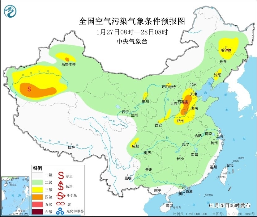 25日至27日,河北南部、河南東部、山東西部等地的部分地區(qū)有間歇性輕度霾。28日至30日,區(qū)域大部大氣擴散條件有所轉差,有輕至中度霾,局地重度霾。