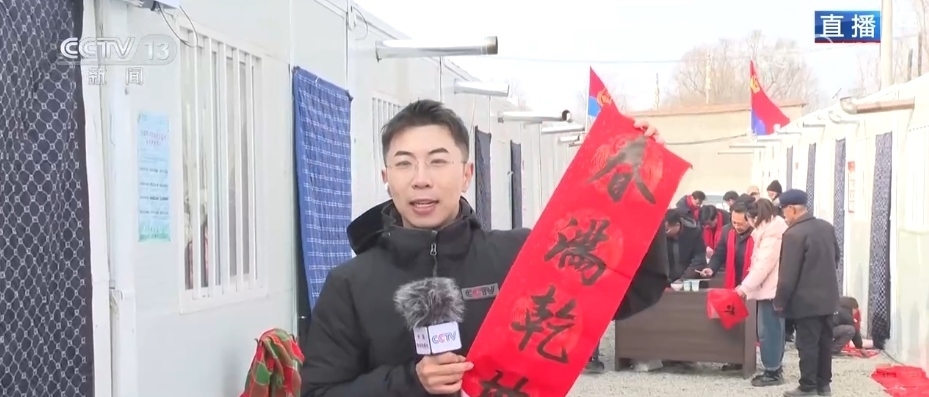 總臺記者 劉澤耕:這里是民和縣草灘村村委廣場安置點,隨著春節(jié)的腳步臨近,來自當(dāng)?shù)氐臅覅f(xié)會的會員正在寫春聯(lián)、寫福字,送給安置點的受災(zāi)群眾。搬進安置點,群眾生活怎么樣?為了迎接春節(jié),大家都在做哪些準備?