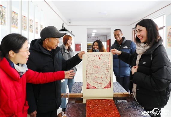 1月27日,近30名留學生走進山東省濰坊高密市姜莊鎮(zhèn),體驗?zāi)嗨?、撲灰年畫、木版年畫、剪紙等非遺民俗文化項目,零距離感受中國傳統(tǒng)文化魅力,體驗中國年味。?