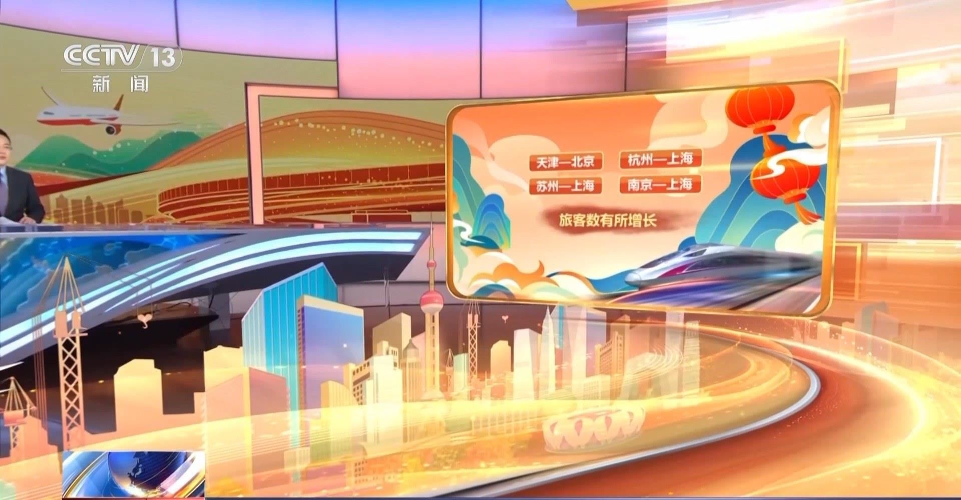 從區(qū)域流動(dòng)來看,今天與春運(yùn)第一天相比,天津至北京,杭州至上海,蘇州至上海,南京至上海這幾條線路的旅客數(shù)有所增長(zhǎng)。