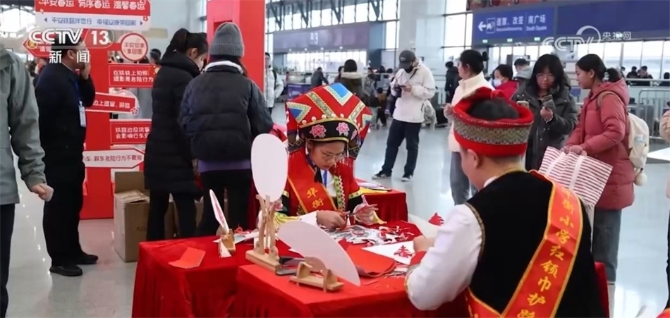 在哈爾濱、西安、上海、廣州各地的火車(chē)站,送“?!?、快閃、簽名打卡、文藝表演、民俗文化展示等豐富多彩的活動(dòng)讓人們帶上一份好心情,踏上溫馨的團(tuán)圓之旅。
