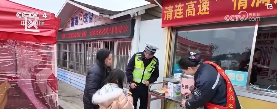 春運期間,廣東清遠市公安局在全市范圍內(nèi)設(shè)置了34個春運暖心服務點?,F(xiàn)場工作人員除了提醒引導廣大司乘人員嚴格遵守交規(guī),共同打造安全、暢通的高速公路通行環(huán)境之外,還對在服務區(qū)內(nèi)休整的司乘人員免費提供暖心服務,打造溫暖春運路。