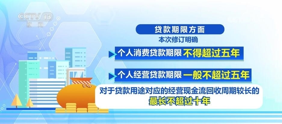 在貸款期限方面,本次修訂明確:固定資產(chǎn)貸款期限一般不超過十年。流動資金貸款期限原則上不超過三年,對經(jīng)營現(xiàn)金流回收周期較長的,最長不超過五年。