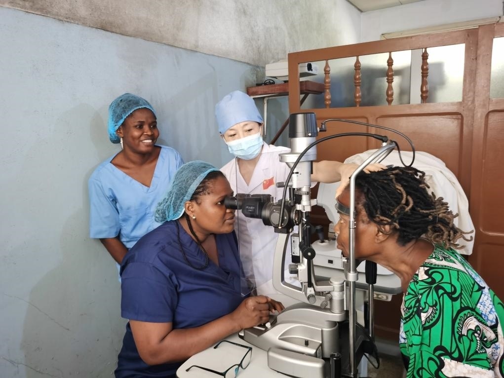 2023年9月,習近平主席同來訪的貝寧總統(tǒng)塔隆宣布中貝建立戰(zhàn)略伙伴關(guān)系,兩國元首共同見證簽署包括衛(wèi)生健康在內(nèi)的多項雙邊合作文件。作為落實兩國元首共識、惠及當?shù)孛裆囊豁椫匾e措,來自中國的眼科專家同中國第26批援貝寧醫(yī)療隊一起在貝寧開展“光明行”活動,為當?shù)?00多名白內(nèi)障患者提供診療,并在當?shù)赝苿咏ⅰ爸胸愌劭浦行摹薄?/p>