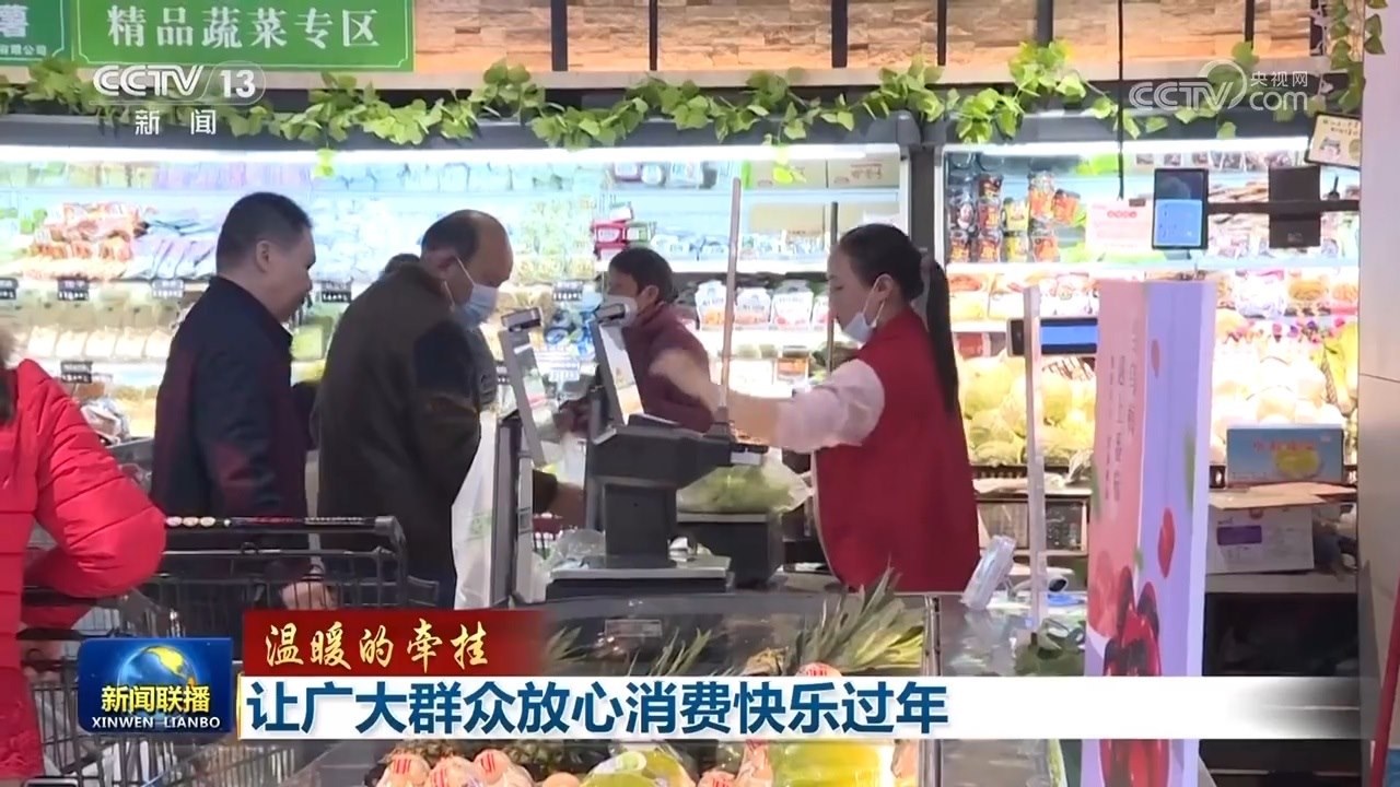 央視網(wǎng)消息(新聞聯(lián)播):春節(jié)是中國(guó)最重要的傳統(tǒng)節(jié)日。習(xí)近平總書(shū)記在天津考察時(shí)強(qiáng)調(diào),各級(jí)黨委和政府要加強(qiáng)節(jié)日期間民生商品的產(chǎn)銷保供,確保數(shù)量充足、品類豐富、質(zhì)量可靠,讓廣大群眾放心消費(fèi)、快樂(lè)過(guò)年。春節(jié)前夕,從中央到地方,多措并舉,保障春節(jié)期間市場(chǎng)供應(yīng),穩(wěn)定消費(fèi)市場(chǎng)價(jià)格,節(jié)日市場(chǎng)貨品豐富,供應(yīng)充足。