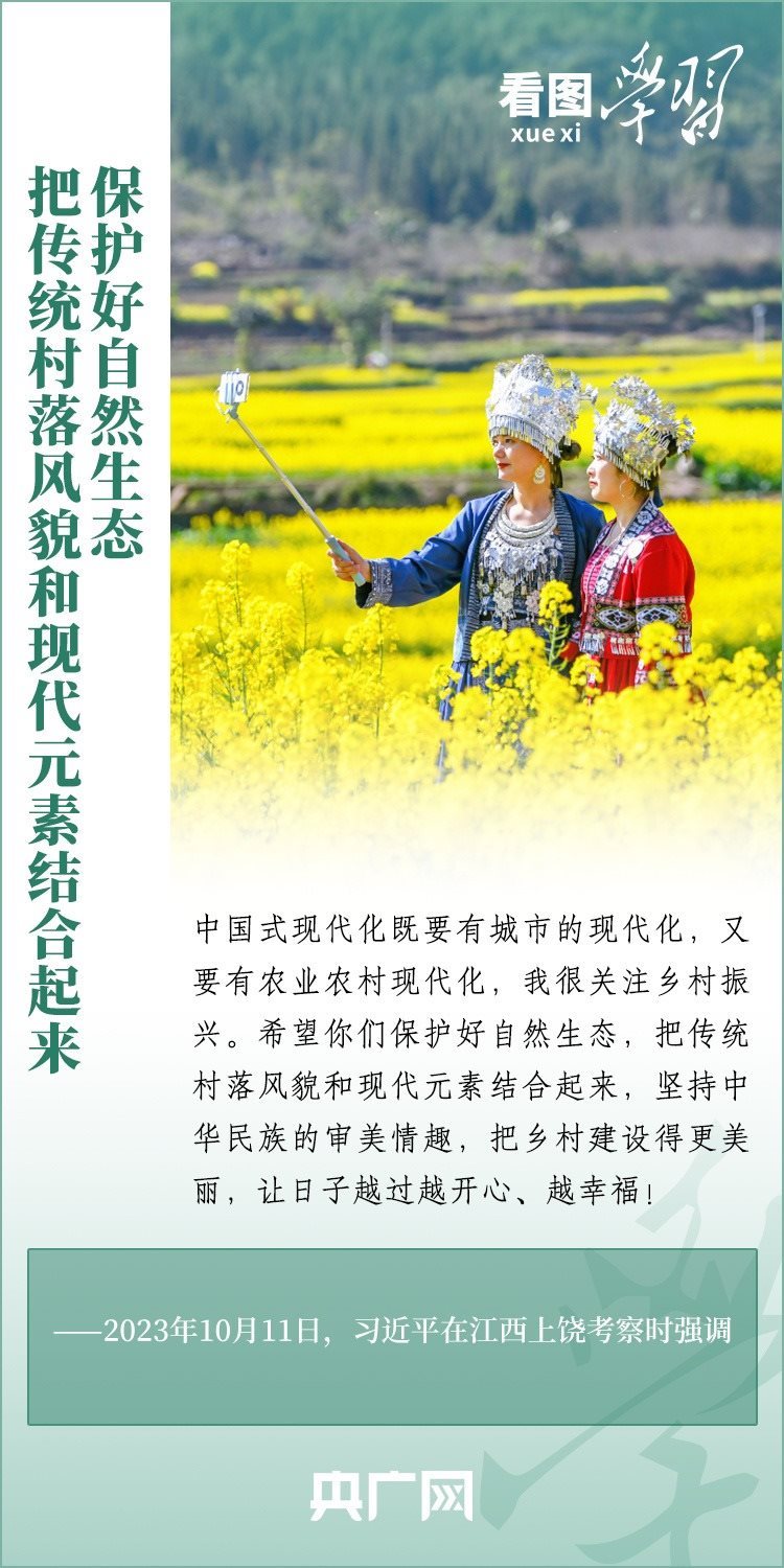 2024年中央一號文件近日發(fā)布,要求各地學習運用“千村示范、萬村整治”工程經(jīng)驗,有力有效推進鄉(xiāng)村全面振興。文件明確提出,要以確保國家糧食安全、確保不發(fā)生規(guī)模性返貧為底線,以提升鄉(xiāng)村產(chǎn)業(yè)發(fā)展水平、提升鄉(xiāng)村建設(shè)水平、提升鄉(xiāng)村治理水平為重點,打好鄉(xiāng)村全面振興漂亮仗,繪就宜居宜業(yè)和美鄉(xiāng)村新畫卷。《看圖學習》特梳理近兩年習近平總書記關(guān)于建設(shè)宜居宜業(yè)和美鄉(xiāng)村的重要論述,一起來學習!