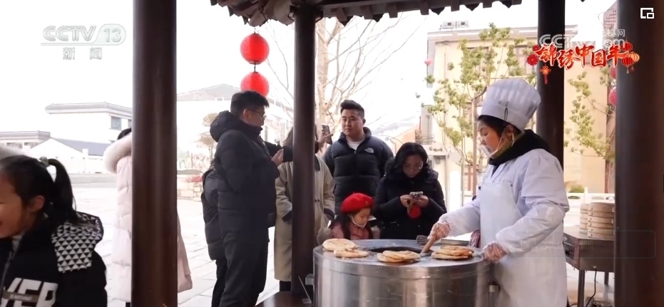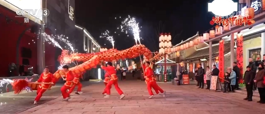 老式燒餅色澤金黃、香酥可口、風(fēng)味獨特,裹滿糖衣的糖葫蘆一口一個香甜美味,還有非遺美食合成昌的糖麻花,傳統(tǒng)美食琳瑯滿目,年味兒十足,吸引了不少市民游客進店品嘗購買。剛?cè)胍?,龍燈點亮珠溪古鎮(zhèn),光影畫卷流光溢彩,煙花舞龍震撼登場,情景劇精彩上演。